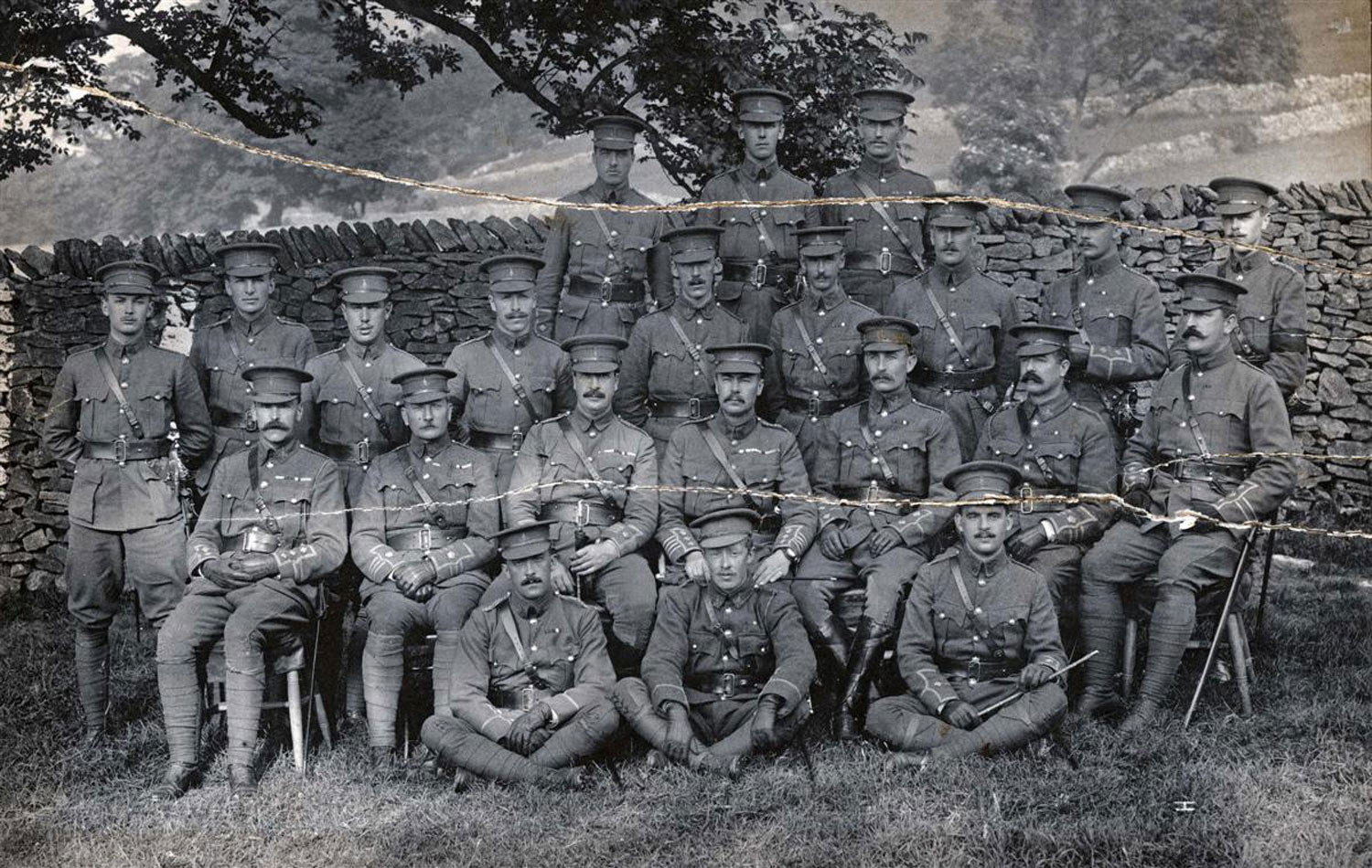 This photograph is reproduced here by kind permission of the Green Howards Museum and is copyright of the Green Howards Museum. The photo shows the Officers of the 1st Battalion at training camp in Castleton, Derbyshire, July 1904.
